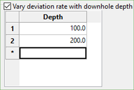 If the Vary deviation rate with downhole depth option is selected in the Calculate Deviation Rates section, then separate rows are created for each threshold.