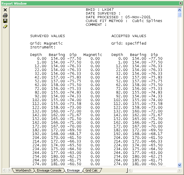 Select this check box to create a file that contains no headers, and the data is in column format. This format is suitable for importing into a spreadsheet. You must give a file name for the report and also choose what data is to be reported, i.e. original surveys, accepted survey or derived surveys.