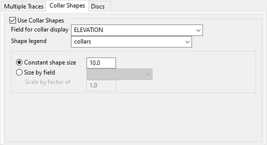 Collar Shapes allows you to insert a shape in place of the collar. This can be used to designate different elevations or levels, drillhole types, etc.
