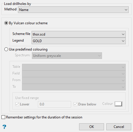 Use the Colour legend drop-down list to select a drillhole colour scheme.