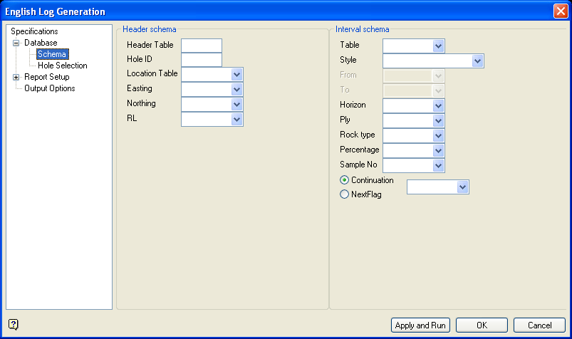 Select the tables and fields defining the holes to be used. By default, the synonyms will be loaded up onto this panel from the selected structural database. You can then edit the schema to use different tables or fields.