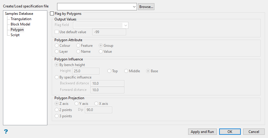 Specify the bench height and location of the polygon in relation to the bench (top, middle or base). The influence is calculated accordingly.