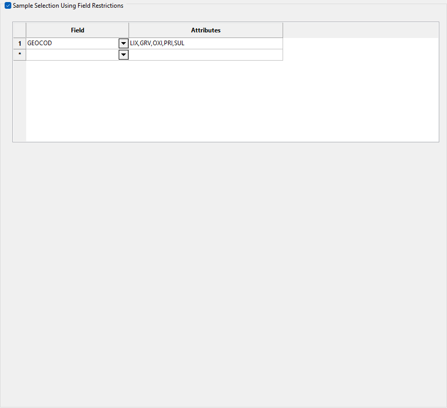 Select this check box if you want to limit the samples to numeric fields and then only to samples that match certain selection criteria.