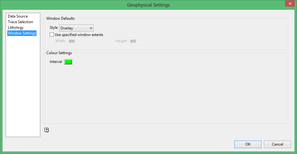 Select this check box if you want to use a window extent other than the standard 800x800.
