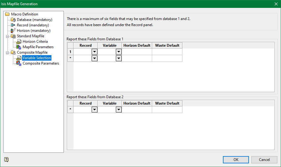 In general, several variables are composited at a time. A maximum of 6 variables (fields) can be specified. For example, 2 variables from Database 1 and 4 from Database 2 is the maximum.