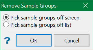 The Remove option allows you to remove a sample group from the screen. The sample group(s) can either be graphically picked off the screen, or selected from a list.