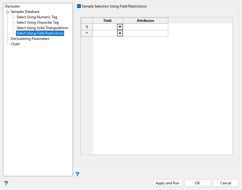Select the Sample Selection Using Field Restrictions checkbox.