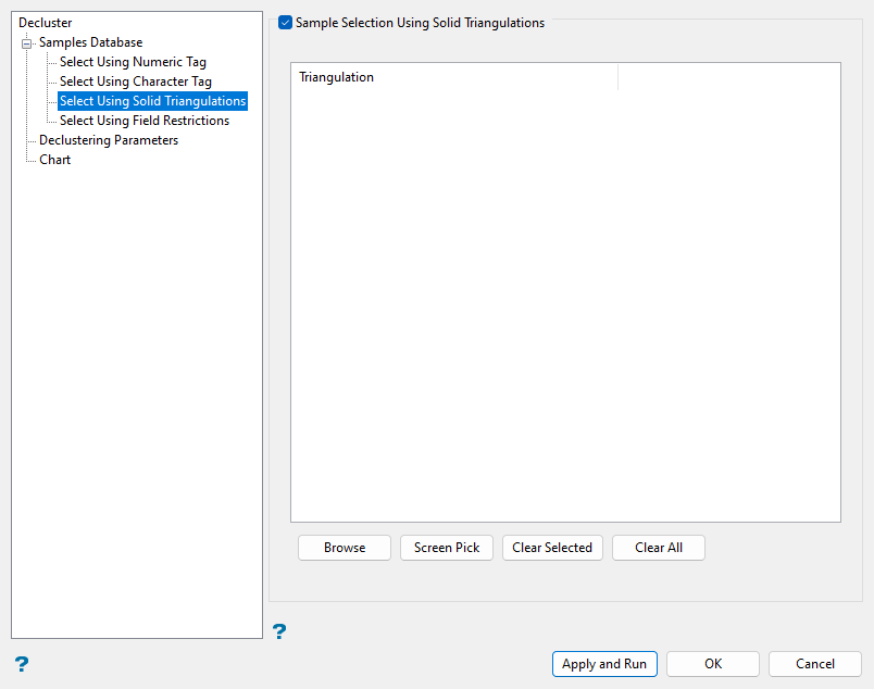 Note: Â If multiple triangulations are selected, samples within the extents of any of the selected triangulations will be selected for declustering.