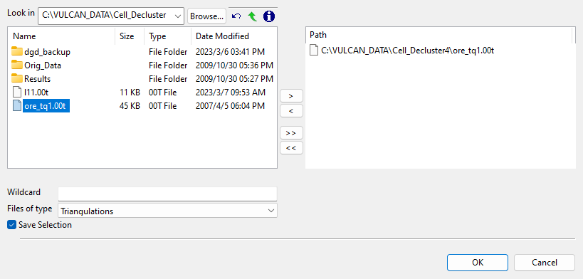 .sel) for future use. Click OK when you are finished selecting triangulation files. - Click the