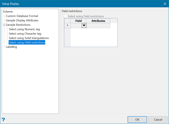 Select this checkbox to limit the samples to those with fields that match certain selection criteria. Select a Field from the drop-down list and enter applicable selection criteria in the Attributes column.