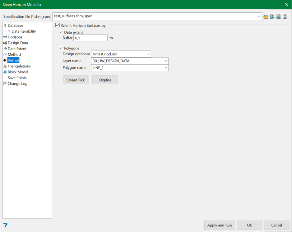 This section allows the output surface triangulations to be relimited by polygons and data extent.