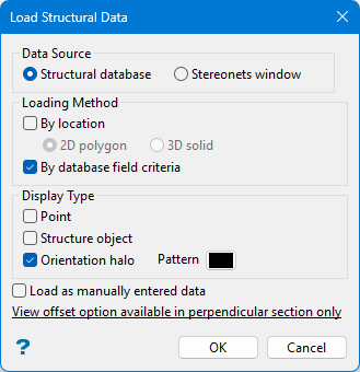 Note: Â Point data (i.e. data with no associated orientation information), if it exists in the structural database, will never be present in the Stereonets Window. It must therefore be loaded directly from the structural database to be displayed in the Primary Window.