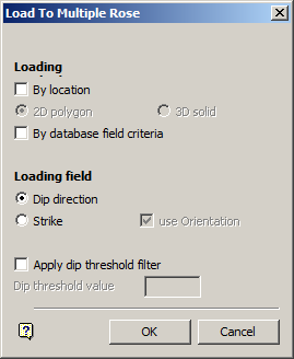 The Load To Multiple Rose option to load and display data from a structural database, Primary or Stereonets Window onto multiple Rose Diagrams in the Rose Diagram Window. Only a single hemisphere is loaded.