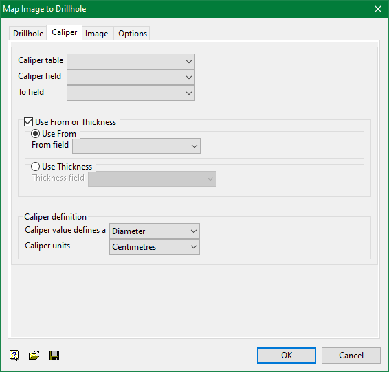 Select this check box to use a specific From or Thickness field. The required field can either be manually entered or selected from the appropriate drop-down list.
