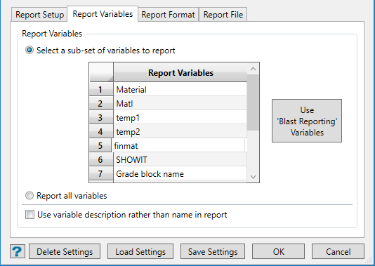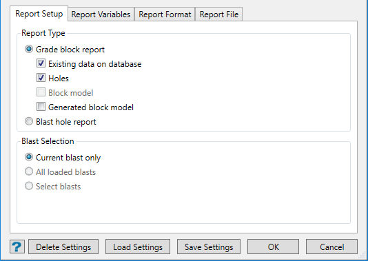 Select options to report on the grade-blocks in the currently loaded blast(s).