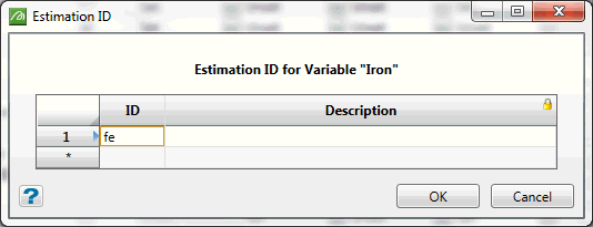 The panel allow for an ID to be specified and if the grade estimation template file contains a description for the given ID, this will be displayed next to the ID specified.