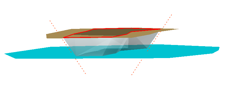 Two surface triangulations need to exist before using this option, one defining the top and one defining the bottom. Also, a polygon needs to exist that outlines the blast. The two triangulations can be larger in extent than the blast area since it is the polygon that will define the aerial extent of the blast area.
