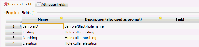 Required fields will be sample ID and the sample coordinate (typically a collar position). This is the same for both samples DB and mapfile. Note: coordinate will be required in full 3D.