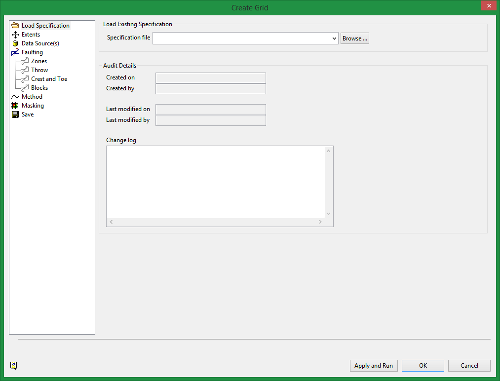 These fields will be automatically populated if the nominated specification file has any modification history. The Created on/by and Last modified on/by fields are read-only.