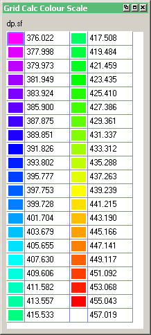 A Grid Scale Bar provides information about the colouring of grids that were displayed using one of the colour by spectrum options. Refer to the Display > Dynamic Display Grid or Display > Static Display Grid options for more information on displaying grids.