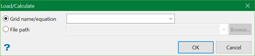 Load/Calculate Grid is an equation (strictly speaking an 'expression') that defines a new grid to be calculated from a set of existing grids. The grid is loaded and becomes the "buffered" grid.