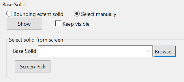 Choose a base solid from the drop-down list or browse from another location. Optionally, users can also manually pick the solid from the screen.