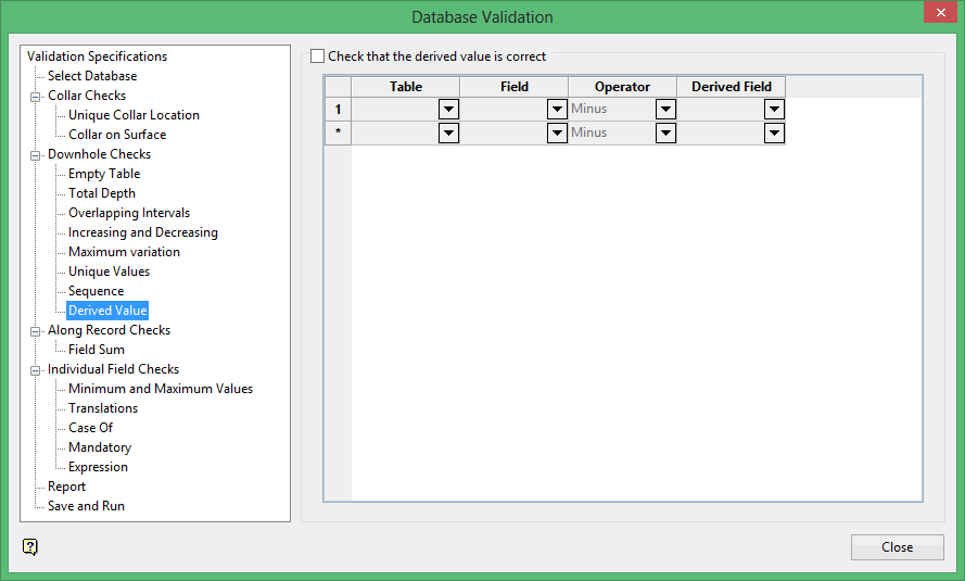 This option determines if two fields on consecutive lines in a drillhole can be derived from each other.