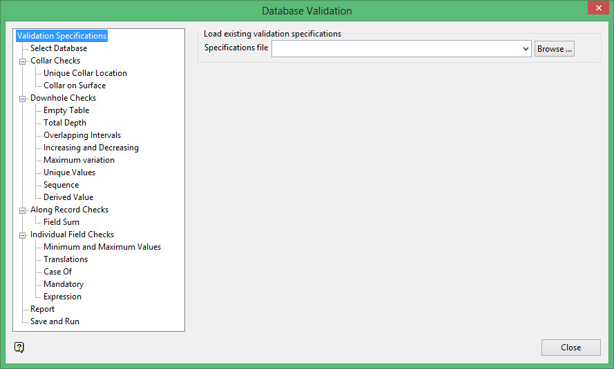 On the Grid Calc menu, point to Integrated Stratigraphic Modelling, and then click Validate Data to display the Database Validation panel.