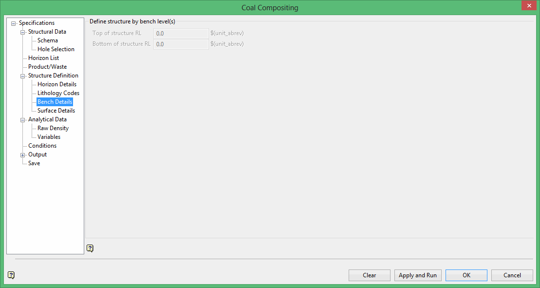 Bench definition options are available if Bench Level was selected as a Structure definition.