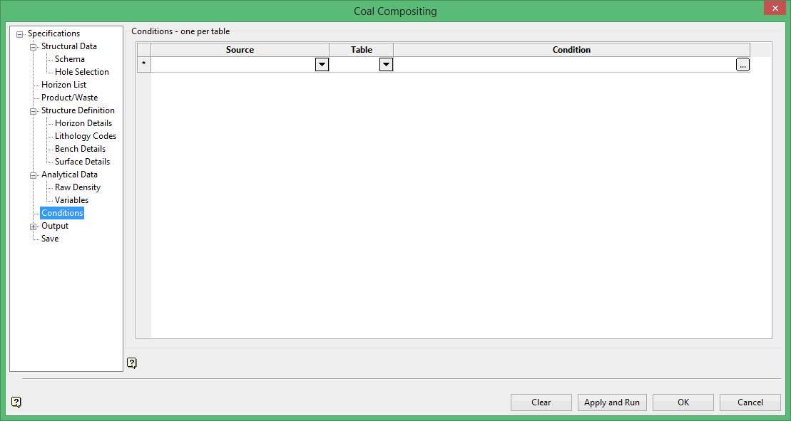 in the Condition column to enter a condition. Once selected, the Conditional Expressions panel displays.