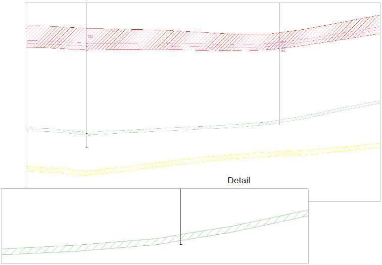 As shown below, the light blue/green horizon, AY, has been given a full interpolated thickness in the drillhole on the right. This occurs because AY is outside the seam logged portion of that hole, but its interpolated position falls in the extent of the drillhole.