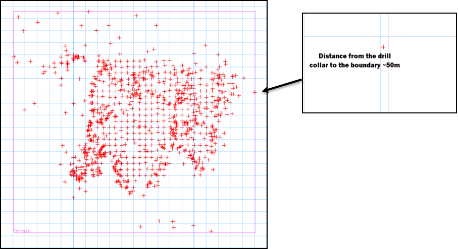 Enter a Boundary margin value. This will define the distance from the outermost drillhole collar to the set modelling boundary. The units of this number are the same as those specified in the .dg1 file.