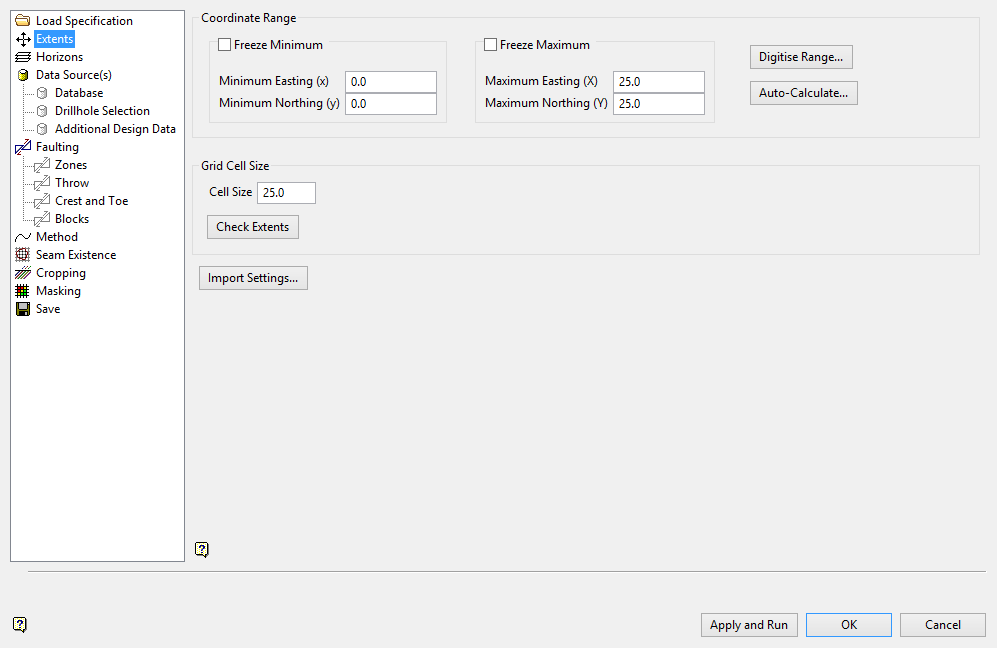 Click Import Settings if you want to use the settings contained within another file. Once selected, the Import Model Extents panel is displayed.