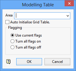 Use Modelling Table to model specific information. The modelling table is typically used for the automatic generation of all quality grids. Any type of grid can be produced using this option. Switches allow maximum flexibility in the selection of the data to be modelled.