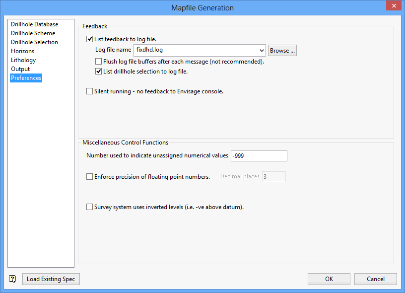 Select this check box to output the drillhole selection list(s) to the nominated log file.