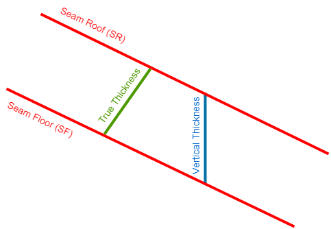 Use this option to calculate the true thickness grid(s) while creating models. In many cases, the grids only measure the 'vertical thickness' by default, which can overestimate the actual seam thickness for dipping seams. However, the 'true thickness' measures the thickness orthogonal to the dip of the seam and therefore is more accurate. Also see Model Stratigraphy >Â Method.