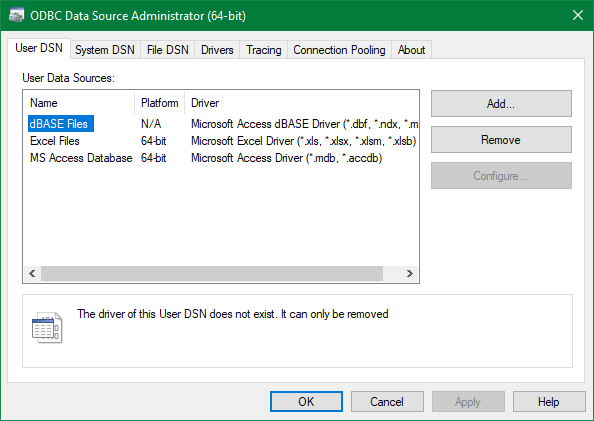 - Open the ODBC Data Source Administrator tool. To do that, navigate to Start > Programs > Windows Administrative Tools, and choose ODBC Data Sources (64-bit) or ODBC Data Sources (32-bit). Optionally, you can search for ODBC Data Source in the Windows Start menu and locate the tool. For Vulcan 2020 and onwards, 32-bit is not supported.