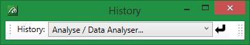 Maintains and displays a list of the recently accessed menu options. Once selected, an option from the drop-down list will be loaded into the Vulcan Window. The last menu option chosen will be presented as the selected item in the drop-down list. The number of options contained in the drop-down list is controlled through the Number of items in list preference, which displays under the Vulcan : dialog and Popups section of the Tools > Preferences option. Note: Â Options accessed via a toolbar button or through the Vulcan and Vulcan Explorer context menus are not recorded in the History drop-down list. |
