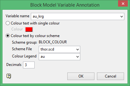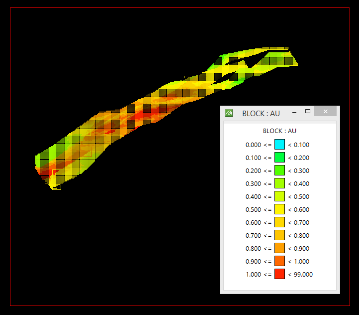 In this tutorial, you will display results from the bm50x50 block model from the Thor project. Â You will view the results of the kriged estimation for gold and display the value of each block using block text display.