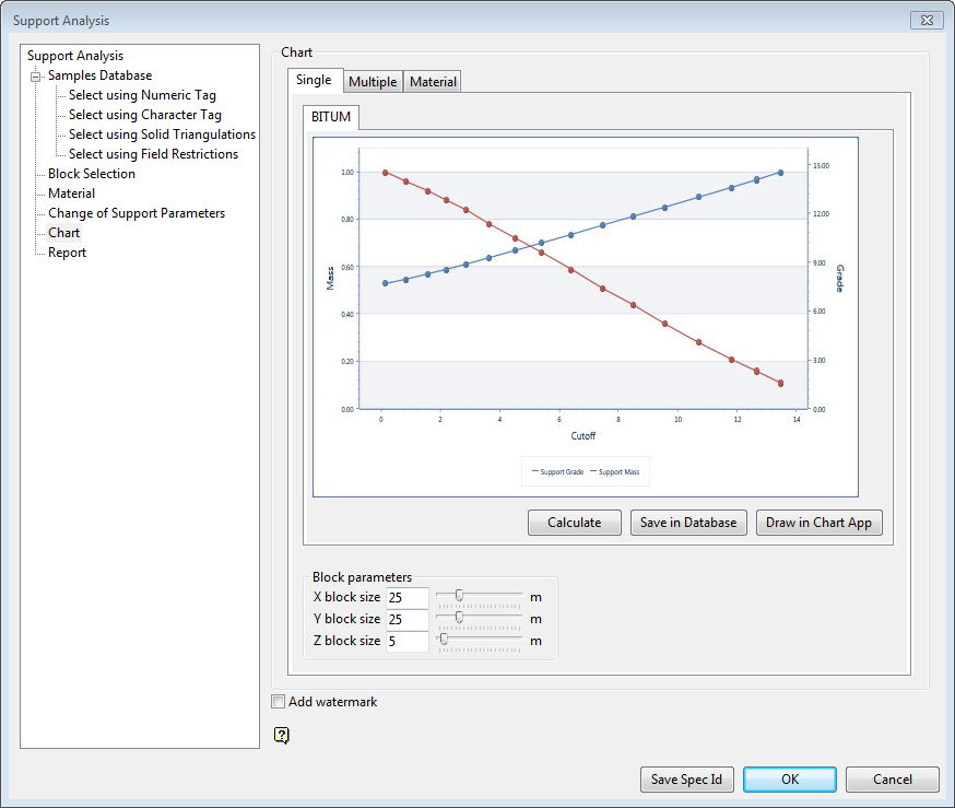 - Select Block > Grade Estimation > Support Analysis.