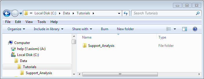 Create a new folder on your local drive. For this tutorial, we will use a folder called C:\Data\Tutorials\Support_Analysis\.