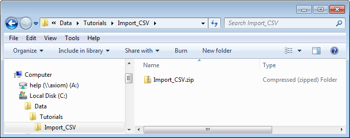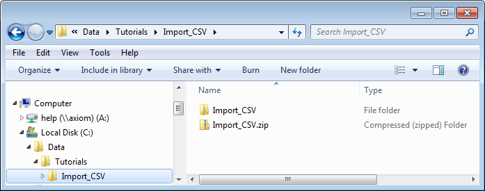 Create a new folder on your local drive. For this tutorial, we will use a folder called C:\Data\Tutorials\Import_CSV\.