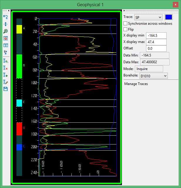 Also note that when hovering over the geophysical trace, the depth and values are displayed in the lower left corner of the window.