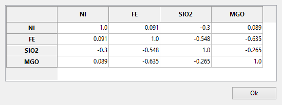 Click the Correlation button. This brings up a panel showing a correlation matrix between your four input variables.