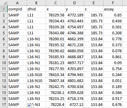 You will need two CSV files to create a Samples database. Â The first CSV file will contain the actual data that you want to display. Â Normally, this is the CSV file that you should already have showing the drillhole or sample ID, point location, assay data, etc.