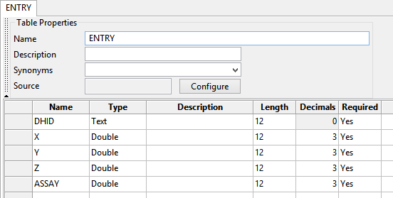 Type ENTRY as the name. Â Notice that the tab at the top of the table will show whatever is typed into the Name field.
