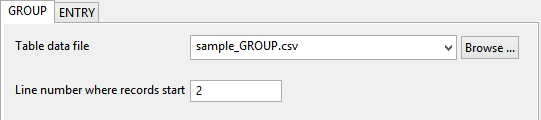 On the Group tab of the Import Tables panel, use the Table data file drop-down list to select the sample_GROUP.csv file. Â If you saved the file in a location other than your working directory then you will need to use the Browse button to search for it.