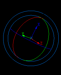 To use the virtual sphere mode, click anywhere on the sphere (not one of the circles) and drag the mouse. You can rotate the data in any direction. When you release the mouse button the view will continue to rotate, to stop the rotation, click the left mouse button (which will leave you in the rotation mode) or use the [Enter] key, which will also exit you from the rotation mode.