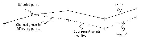 Select the set of intersection points to modify (i.e. an object with a name IP<n>). Select the point to modify. The Vertical intersection points panel is then displayed as when creating new points.