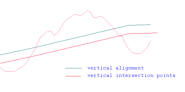 If the vertical alignment is being generated for the first time, then the alignment is a straight line (i.e. all the alignment points have the same elevation). The alignment string is one object with the name ALNV. The object is placed into a layer named <design_name>.A.